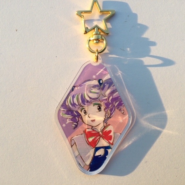Porta chiavi a forma di rombo con gancio a forma di stella. Personaggio: Creamy con codini. Originale giapponese. Nuovo.