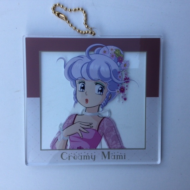 Porta chiavi con Creamy in abito roisa e pettinino tra i capelli con fiori rosa. Dimensioni: 9,5 x 10 cm. Originale giapponese. Nuovo.