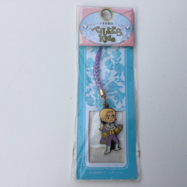 Accessorio per cellulare da appendere con cordino. Berubara Kids. Personaggio: Hans Axel von Fersen. Sul retro uno specchietto. Originale giapponese.