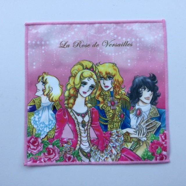 Asciugamani. Personaggi: Oscar, André, Maria Antonietta e Hans Axel von Fersen vestito in borghese. Materiale: cotone 100%. Dimensioni: 21 x 21 cm. Originale giapponese.