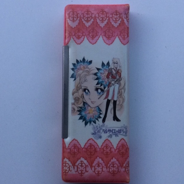Astuccio rigido in PVC. Articolo vintage. Personaggi: Oscar in uniforme rossa e Maria Antonietta. Dimensioni: 23 x 9 cm. Originale giapponese.