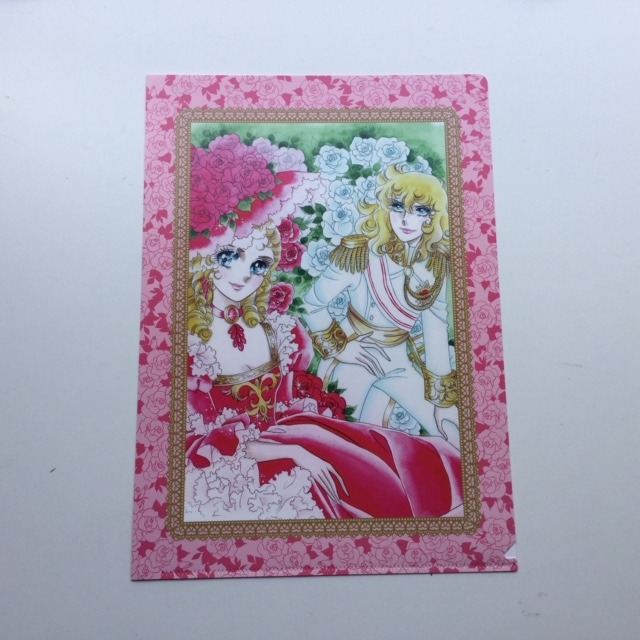 Clear file. Apertura a L. Formato A4. Personaggi: Oscar in divisa bianca e Maria Antonietta con cappello. Originale giapponese.