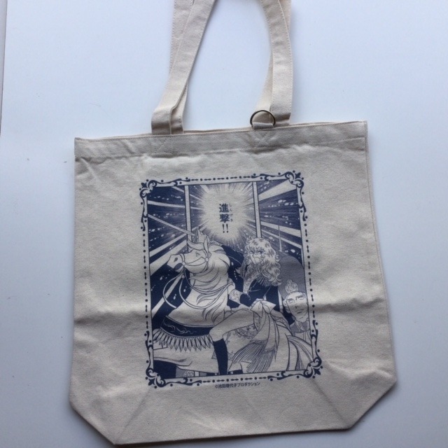 Shopper in tela. Immagine: Oscar con divisa blu a cavallo. Misure borsa (non comprese le maniglie): 36 x 36 cm. Nuovo. Originale giapponese.
